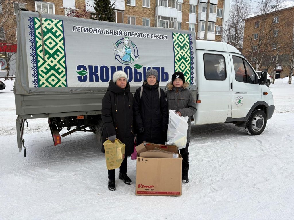 В Сосногорске для удобства жителей экомобиль работал в двух точках. Радует, что экологическая акция собрала большое количество детей. Ребята приходили с родителями и друзьями, даже целыми классами и в составе школьных объединений. Школы № 1, 2, 3, 4, Гимназия г. Сосногорска отлично подготовились. Учителя, ребята и их родители собирали вторсырье специально к приезду экомобиля и принесли много пластика и макулатуры. А семьи из сообщества Движения Первых «Родные-Любимые» собирали дома и сдали в экомобиль макулатуру, пластиковые бутылки, блистеры. Будущие кадеты Кадетской школы оказали волонтерскую помощь жителю Сосногорска Владимиру Мирошникову в погрузке и доставке большого объема, собранной им макулатуры. Следующую экоакцию в Сосногорске планируем провести в Новогодние каникулы.