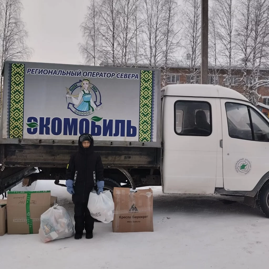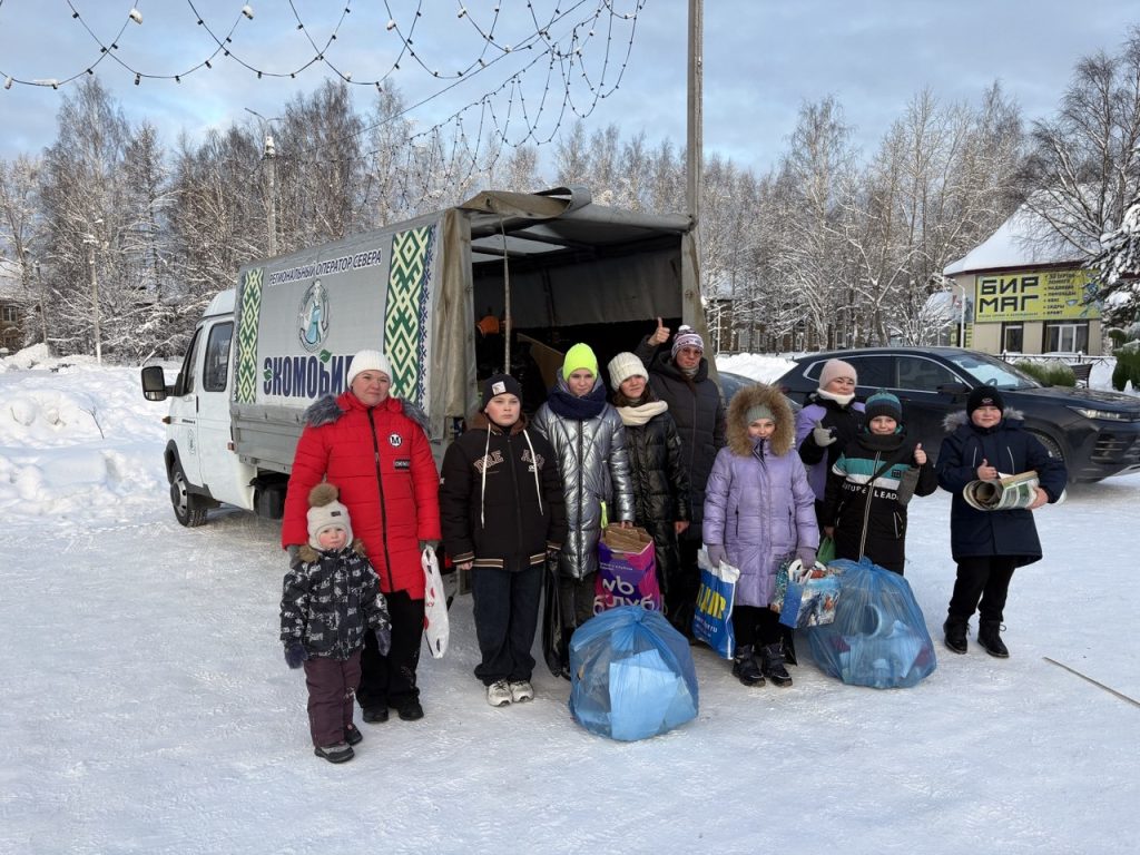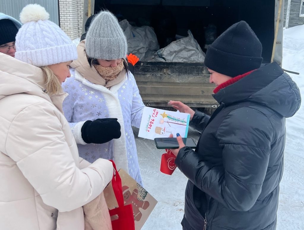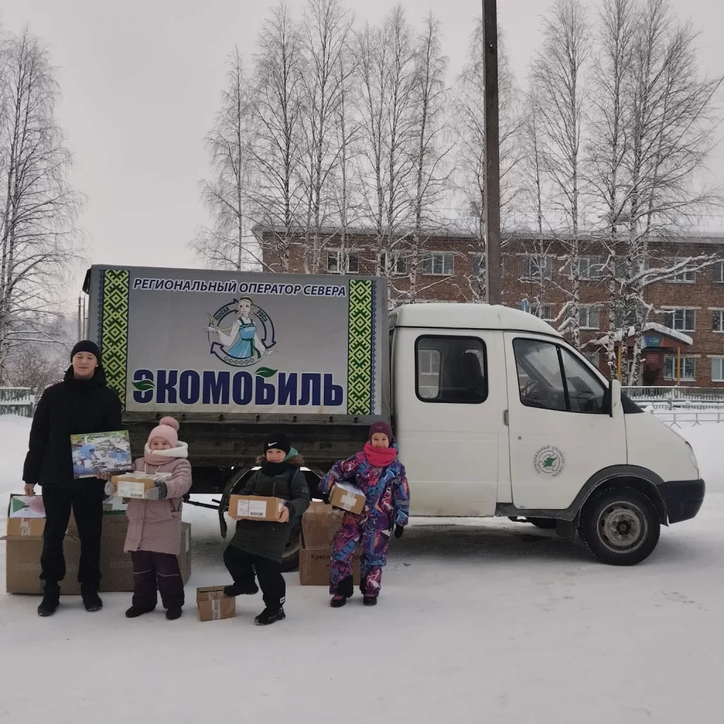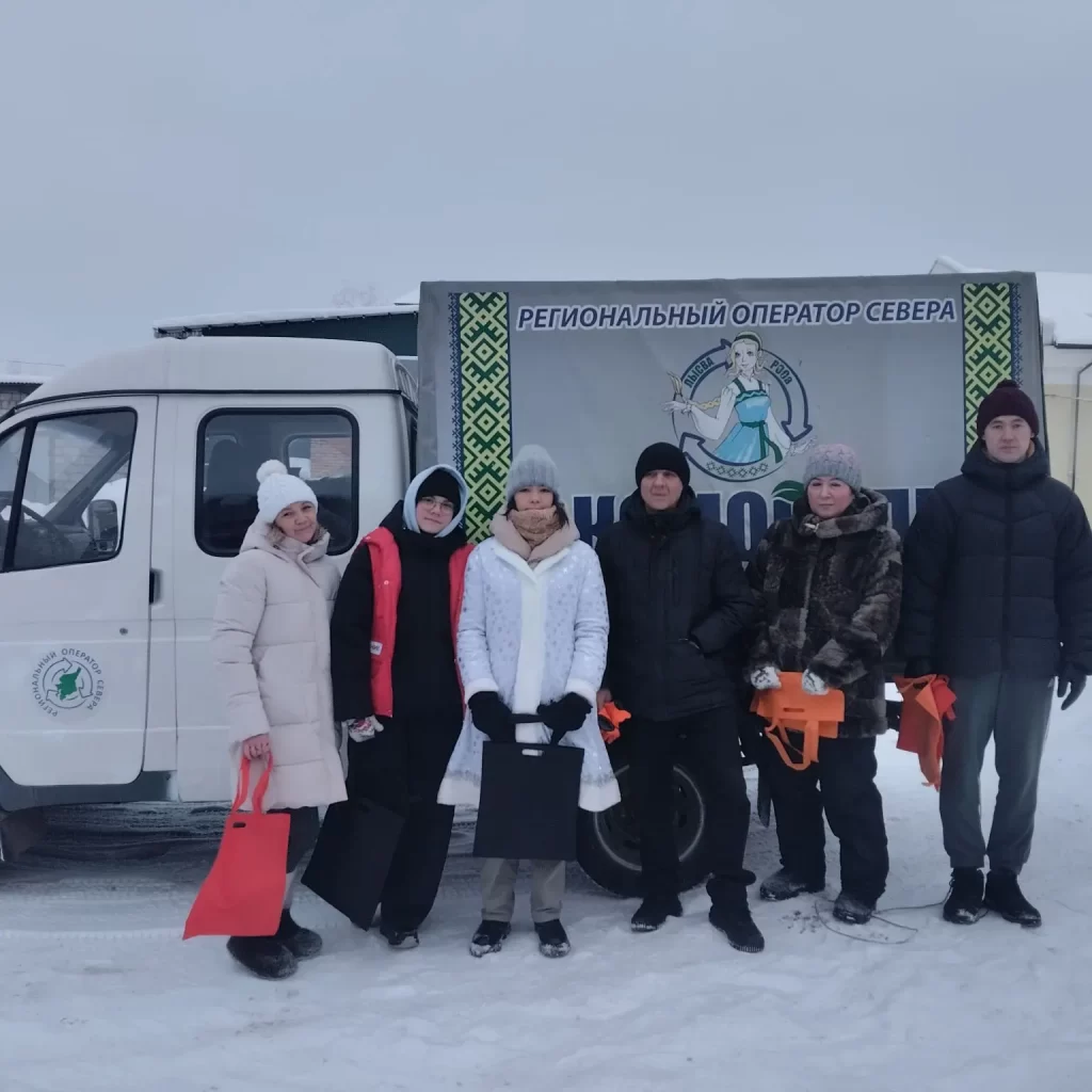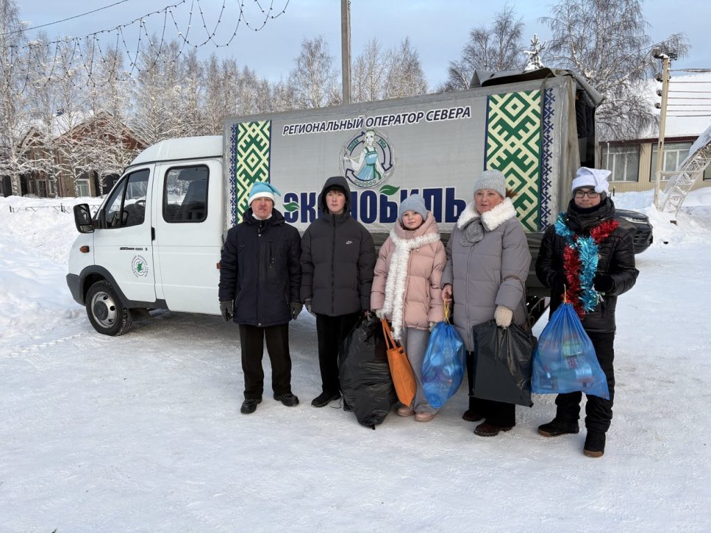 Экомобиль «Лысва» активно работал по всей республике. Первая экологическая акция в новом 2026 году прошла в двух населенных пунктах Усть – Вымского района: Айкино и Жешарте. На акции сотрудников Регионального оператора Севера ждал приятный сюрприз: их поздравила с Новым годом Снегурочка – активистка Движения Первых Роза Семенова. Она вручила сладкие подарки и новогодние открытки, подготовленные волонтёрами Победы с. Айкино, а также участниками сообществ «Родные-Любимые»» и «Движение Первых» Усть-Вымского района.
