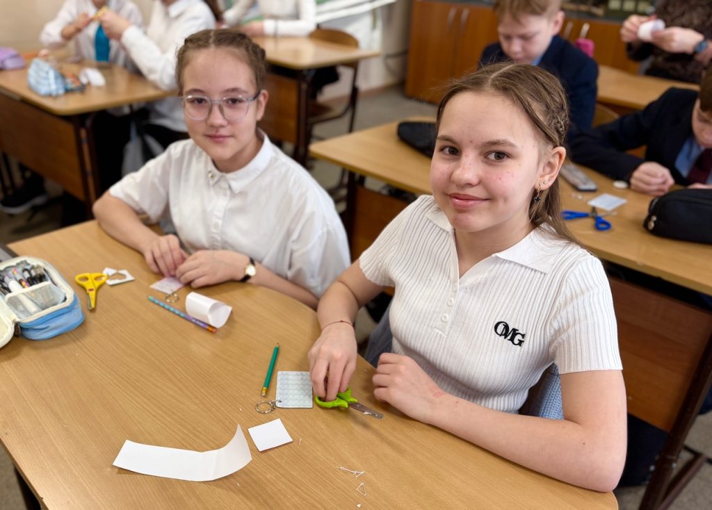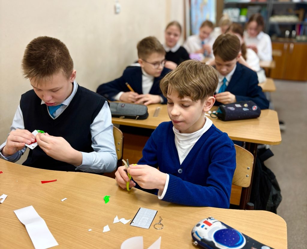 Сотрудники регоператора наглядно показали, что отходы можно превратить в полезные вещи: научили создавать фликеры из старых пластиковых карт, которые не перерабатываются. Фликер – это светоотражающая деталь, благодаря ей водители видят пешехода в темное время суток. Теперь пятиклашки сами смогут изготавливать такие полезные брелоки для своих младших сестер, братьев и друзей.